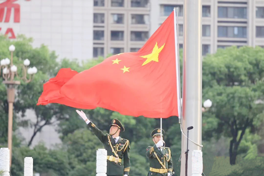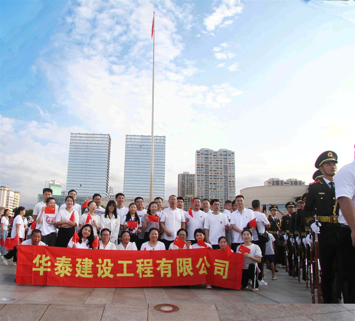6點(diǎn)10分,在慷慨激昂的《中國人民解放軍進(jìn)行曲》中,英姿颯爽的國旗護(hù)衛(wèi)隊(duì)隊(duì)員踢著堅(jiān)實(shí)而雄健的步伐從候場(chǎng)區(qū)走過金水橋,精神抖擻地護(hù)送國旗走向升旗臺(tái)。隨后,雄壯的中華人民共和國國歌響起,升旗手振臂一揮,鮮艷的五星紅旗冉冉升起。華泰建設(shè)全體員工滿心激動(dòng),仰望國旗、高唱國歌,祝愿?jìng)ゴ笞鎳睒s昌盛。