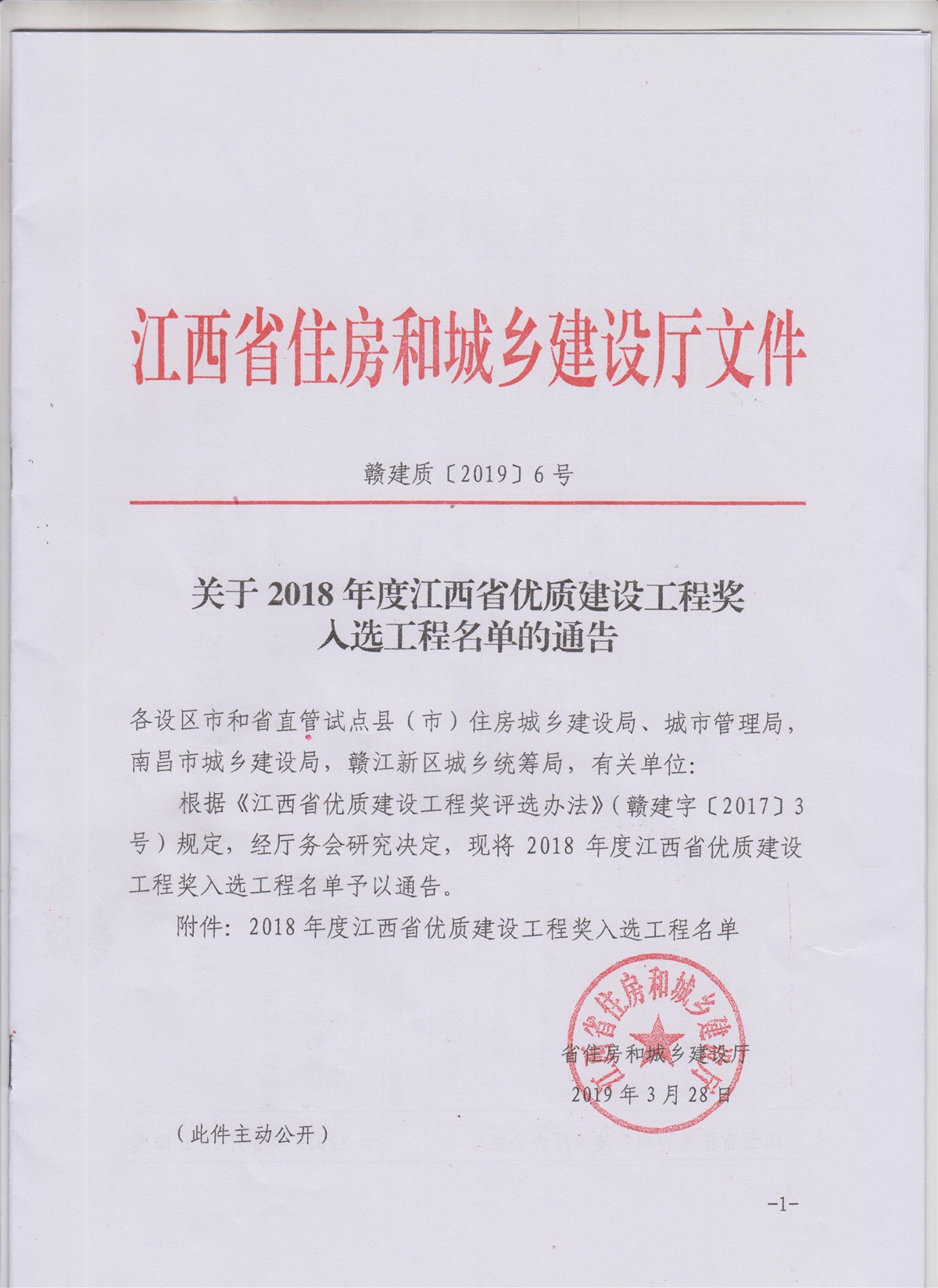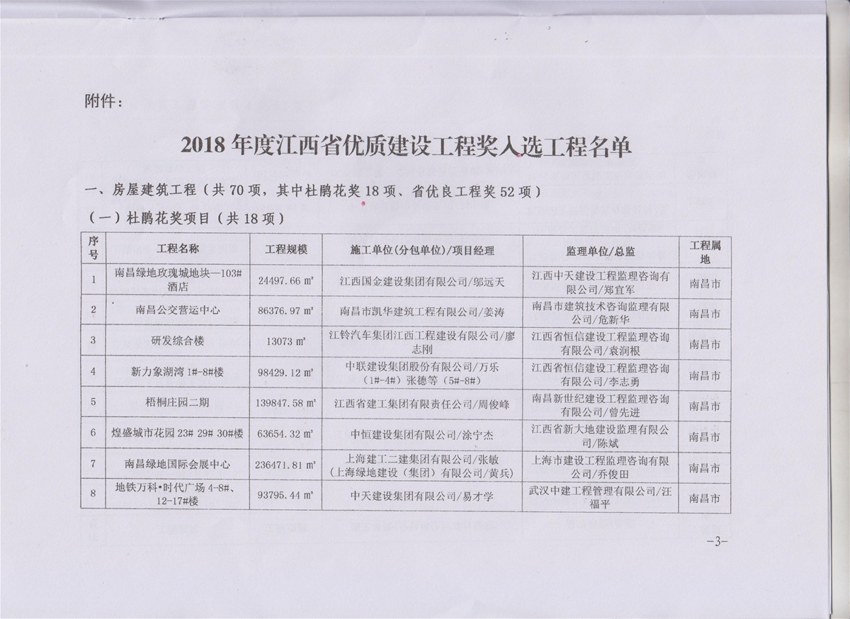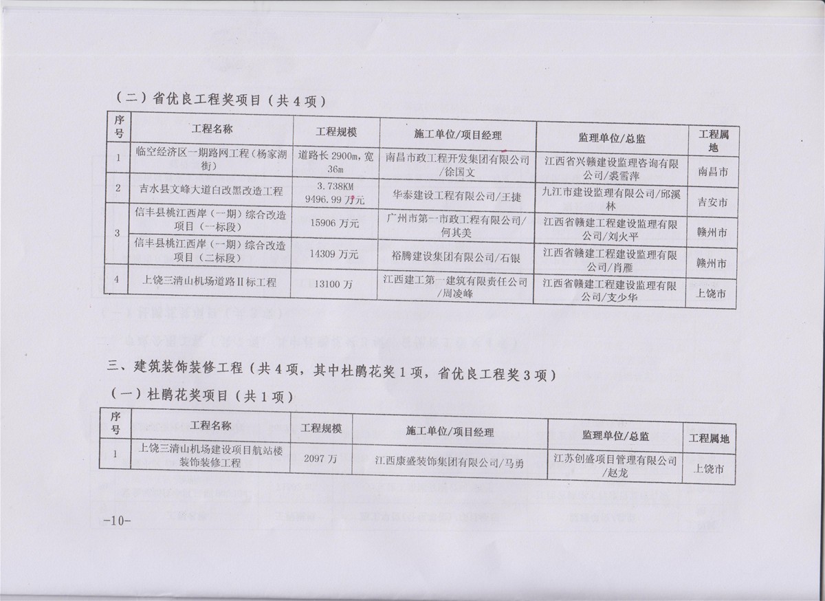 2019年3月28日,江西省住房和城鄉(xiāng)建設(shè)廳根據(jù)《江西省優(yōu)質(zhì)建設(shè)工程獎(jiǎng)評(píng)選辦法》會(huì)議研究評(píng)定,華泰建設(shè)工程有限公司施工的吉水縣文峰大道白改黑改造工程入選2018年江西省優(yōu)良工程獎(jiǎng)。