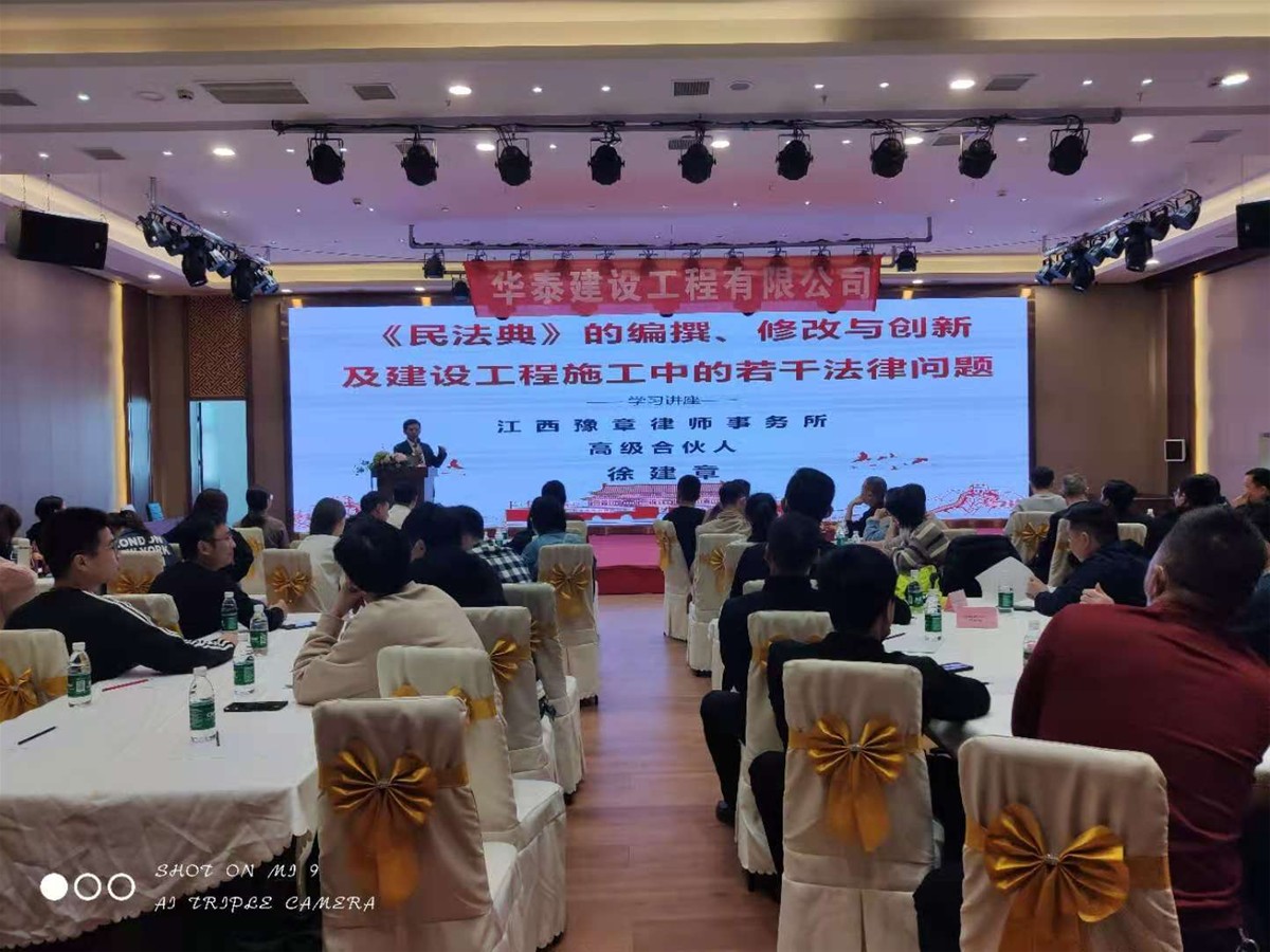 2020年11月14日我司組織本公司總部員工與各項(xiàng)目代表現(xiàn)場(chǎng)集中學(xué)習(xí)《民法典》,互相交流了學(xué)習(xí)心得。本次培訓(xùn)由江西豫章律師事務(wù)所徐建章律師主持,并為我司解答相關(guān)的法律疑問。