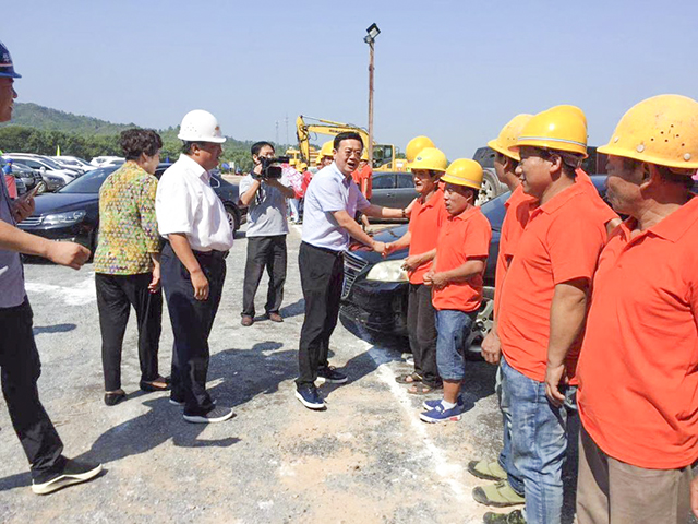 上圖是縣委副書記、縣長危巖,縣人大常委會主任陳曉琴在現(xiàn)場慰問建設(shè)工人。