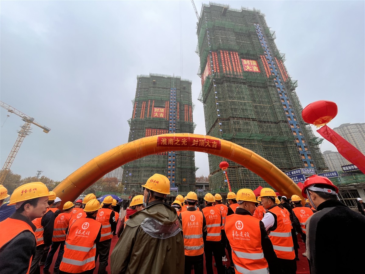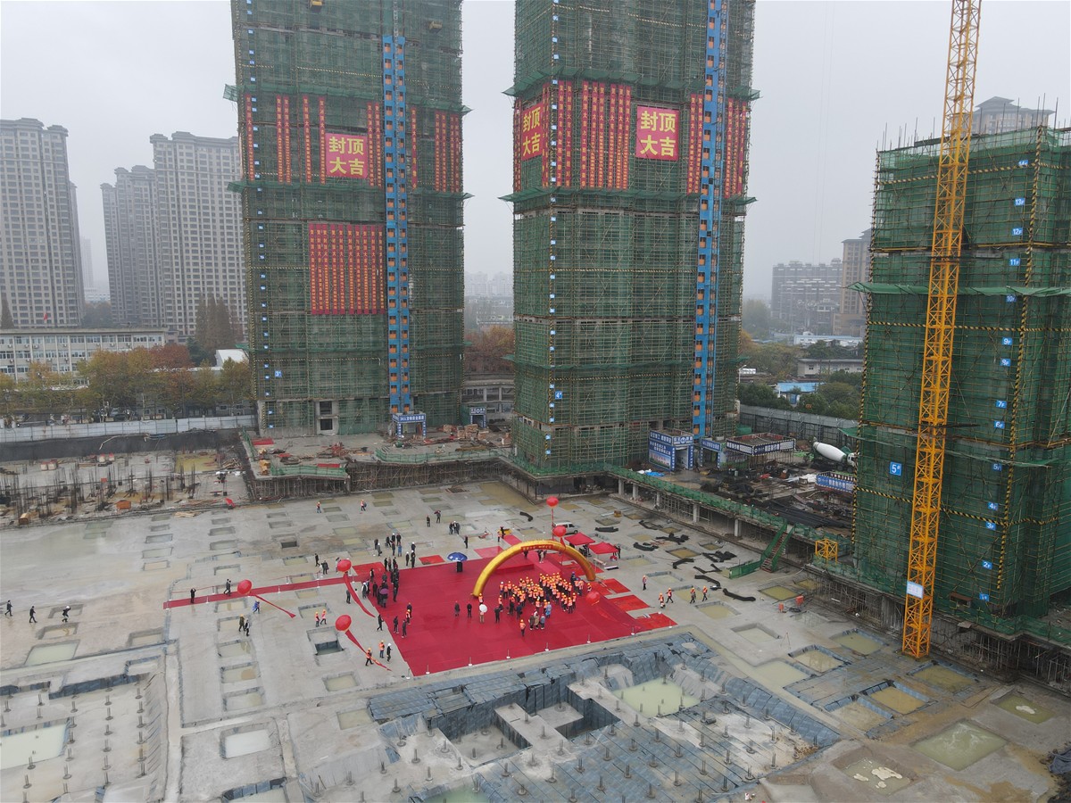 11月22日上午,安徽淮南天泰花園3#樓4#樓主體結(jié)構(gòu)榮耀封頂!作為2022年淮南大通區(qū)一號(hào)重點(diǎn)工程“天泰花園”項(xiàng)目承建方,華泰建設(shè)工程有限公司常務(wù)副總經(jīng)理周立輝受邀出席儀式并致辭。大通區(qū)常務(wù)副區(qū)長(zhǎng)張健、副區(qū)長(zhǎng)聶鑫、人大常務(wù)副主任劉福巖、大通區(qū)法院副院長(zhǎng)秦永玲、大通區(qū)應(yīng)急事務(wù)局局長(zhǎng)應(yīng)虎、大通街道黨委書記姚振宇、主任賀偉、安徽天泰置業(yè)集團(tuán)董事長(zhǎng)許世灶、中海物業(yè)華中區(qū)域總經(jīng)理郭寶強(qiáng)、安徽行而不同科技有限公司董事長(zhǎng)喻志武、江西鴻廬供應(yīng)鏈有限公司總經(jīng)理朱寧、北京德恒(溫州)律師事務(wù)所代表葉玉芝及業(yè)主代表等蒞臨現(xiàn)場(chǎng),共同見證了這一歷史性時(shí)刻。封頂儀式由淮南金豐易居置業(yè)投資有限公司總經(jīng)理王震川主持。