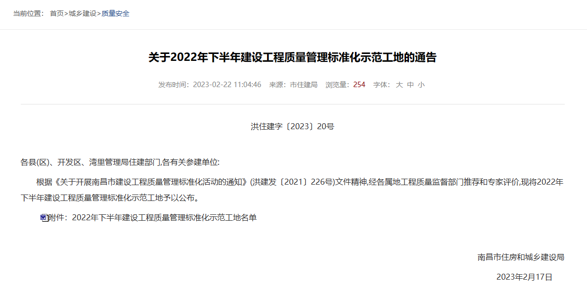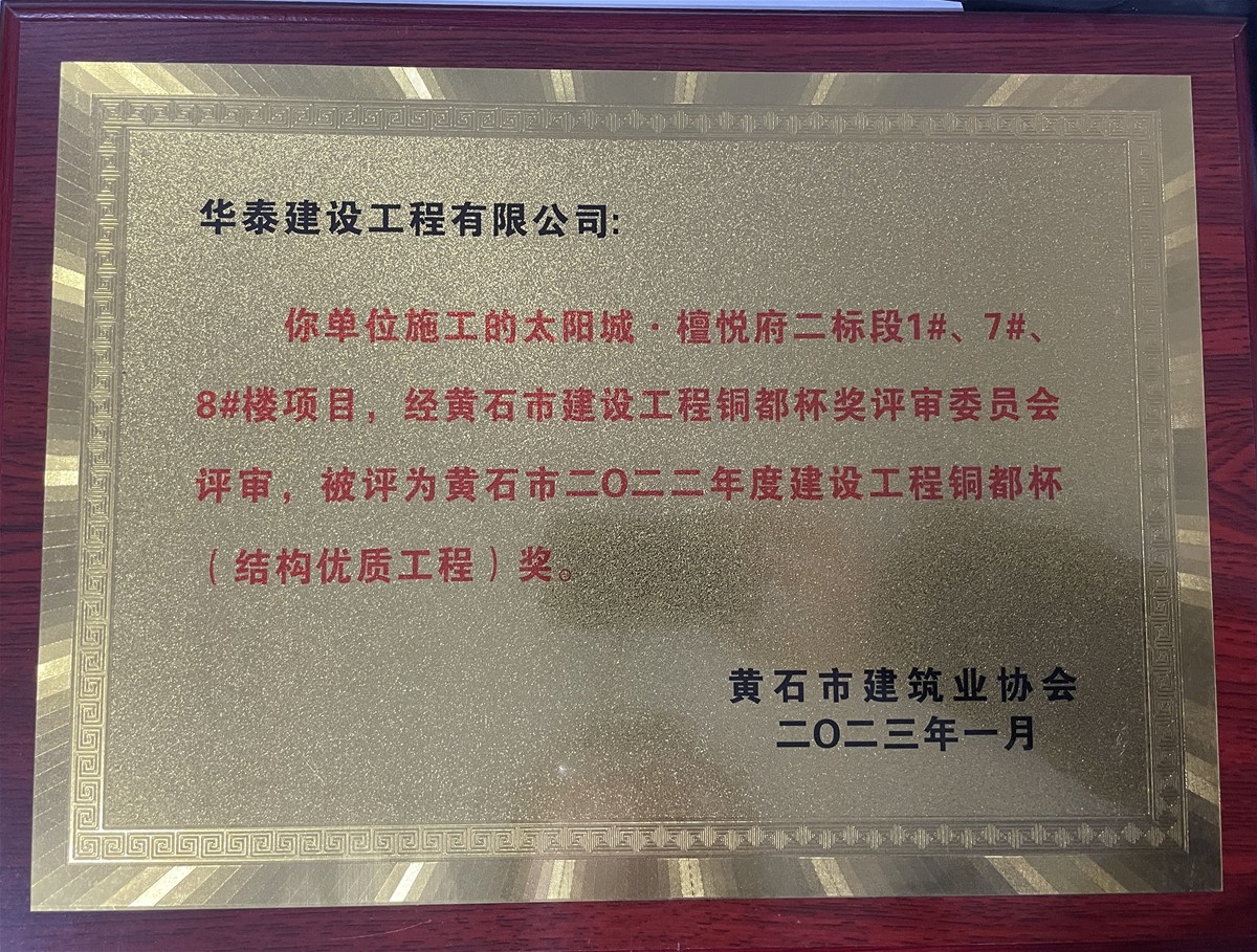 近日,在南昌市住房和城鄉(xiāng)建設局發(fā)布的《關于2022年下半年建設工程質(zhì)量管理標準化示范工地的通告》、黃石市建筑業(yè)協(xié)會發(fā)布的《關于授予2022年度黃石市建設結(jié)構(gòu)優(yōu)質(zhì)工程獎項目的通知》中,經(jīng)各屬地工程質(zhì)量監(jiān)督部門推薦和專家評價,由華泰建設工程有限公司承建的“南水大廈”項目與“太陽城·檀悅府二標段1#、7#、8#樓”項目分別榮獲南昌市“2022年下半年建設工程質(zhì)量管理標準化示范工地”、“黃石市2022年度建設工程銅都杯(結(jié)構(gòu)優(yōu)質(zhì)工程)獎”。建設工程質(zhì)量標準化示范工地評比是考核參建單位質(zhì)量管理水平的重要標準之一,同時,建設工程銅都杯(結(jié)構(gòu)優(yōu)質(zhì)工程獎)代表了建筑工程結(jié)構(gòu)施工質(zhì)量的高水平,也是精品工程的重要標志。獲此兩項殊榮,是對華泰建設項目施工水平及安全質(zhì)量管理的充分肯定,彰顯了華泰建設在工程項目管理、工程品質(zhì)等領域的卓越實力。