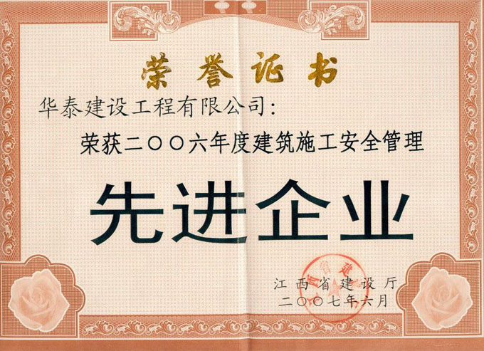 首頁(yè) > 關(guān)于華泰 > 企業(yè)榮譽(yù) > 榮獲2006年度建筑施工安全管理先進(jìn)企業(yè)獎(jiǎng)