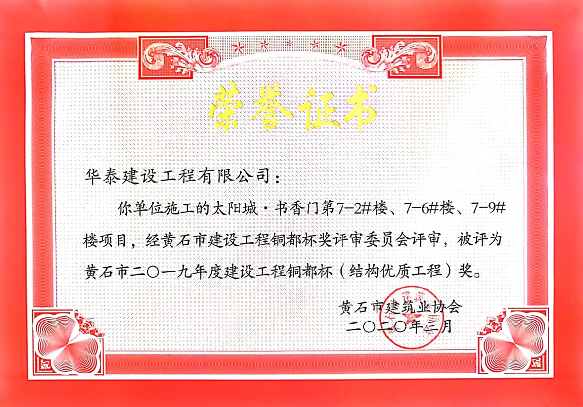 榮獲2019年度黃石市建設(shè)工程結(jié)構(gòu)優(yōu)質(zhì)工程獎 ——太陽城·書香門第